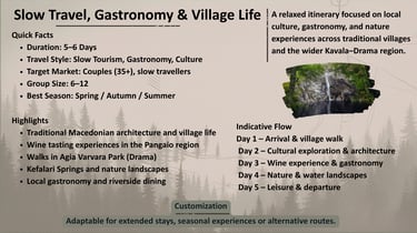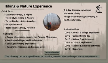 A curated portfolio of flexible travel concepts designed for tour operators seeking authentic, small-group experiences in Northern Greece.