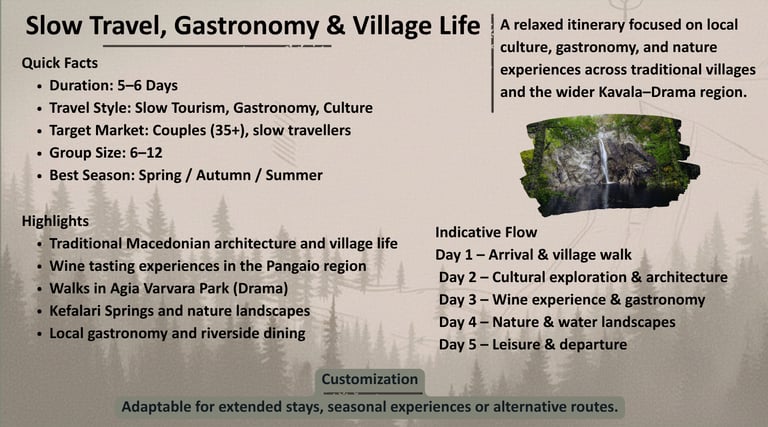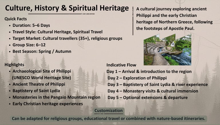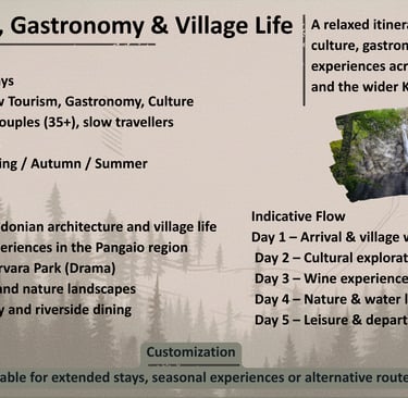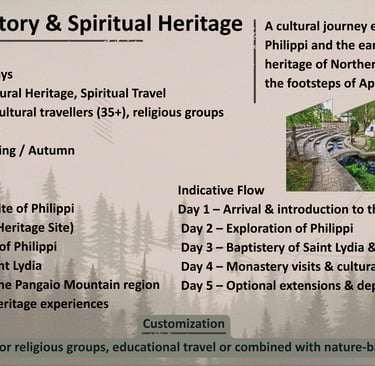 A curated portfolio of flexible travel concepts designed for tour operators seeking authentic, small-group experiences in Northern Greece.