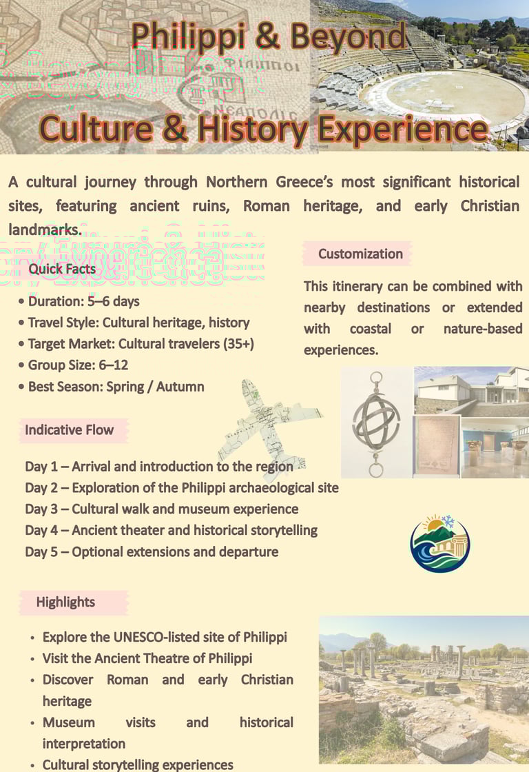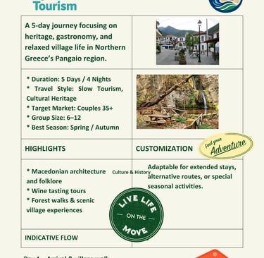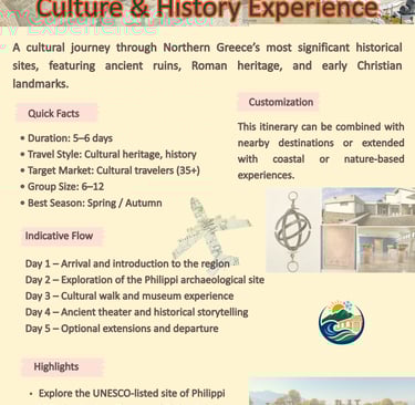 A curated selection of travel concepts designed for tour operators and travel agencies seeking authentic experiences in Northern Greece.